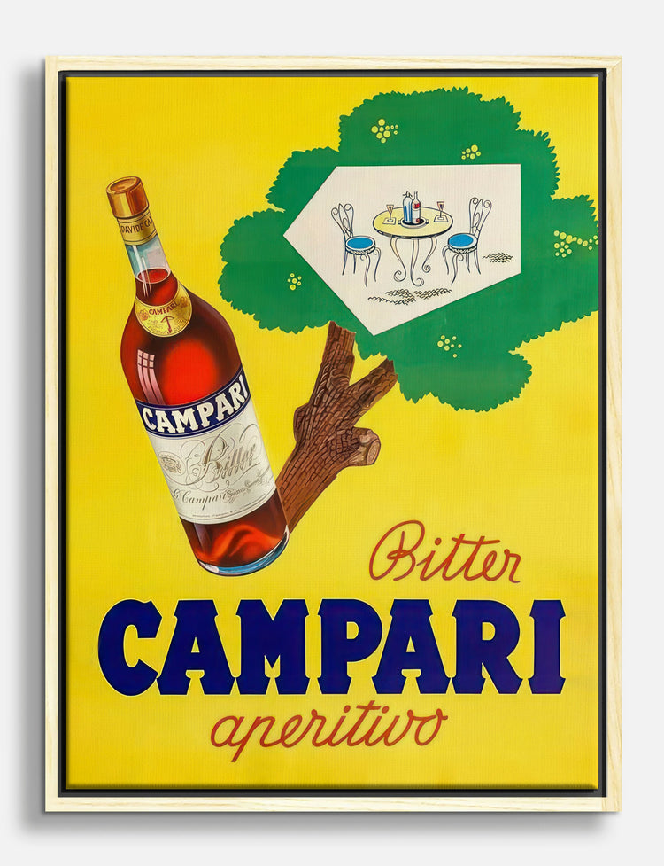 Bold, nostalgic, and instantly inviting—this vintage Campari poster brings a splash of Italian flair right into your space. The playful mix of sunshine yellow, lush green, and deep red makes any room feel like the perfect spot for a stylish aperitivo hour.