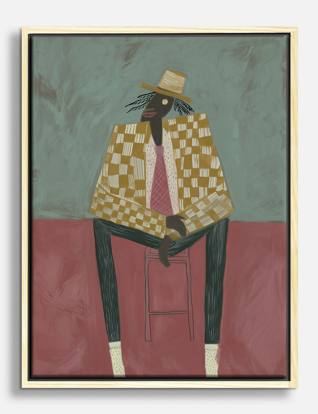 Bold confidence gets a fresh twist with this striking portrait. The oversized checkerboard jacket and straw hat radiate personality—perfect for anyone who wants their space to tell a story. There’s a relaxed, creative energy here that instantly transforms your room into a conversation starter. Picture it above your sofa, in a cozy reading nook, or even in your home office—anywhere you want to make a statement without trying too hard. The earthy palette of ochre, soft reds, and muted greens blends effortlessly with modern or eclectic decor. With this piece, your walls become a showcase for self-expression and warmth. You’ll love the way it brings out your unique style and makes every guest feel right at home.