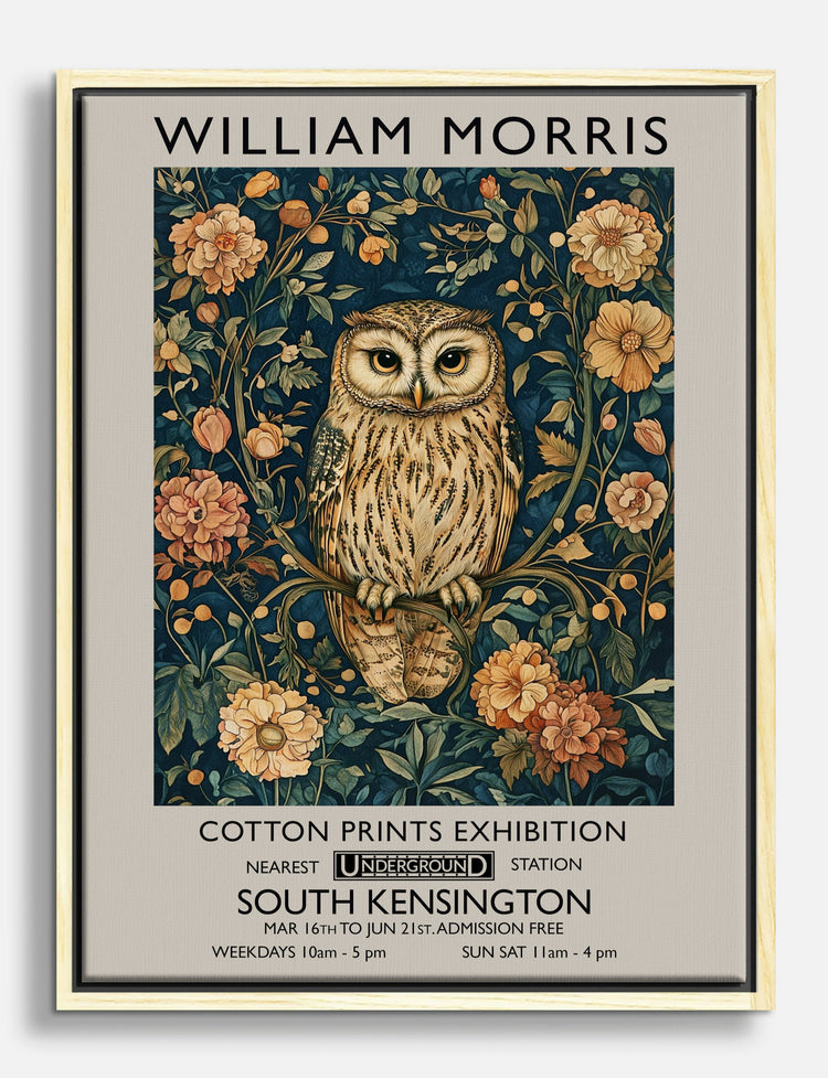 Embrace the charm of nature with this captivating owl design by William Morris. Perfect for your living room or bedroom, this piece adds a touch of vintage elegance to any space. The intricate floral patterns and warm tones blend effortlessly with various decor styles, inviting a sense of pride and style into your home. Transform your space into a personal sanctuary with this unique artwork.