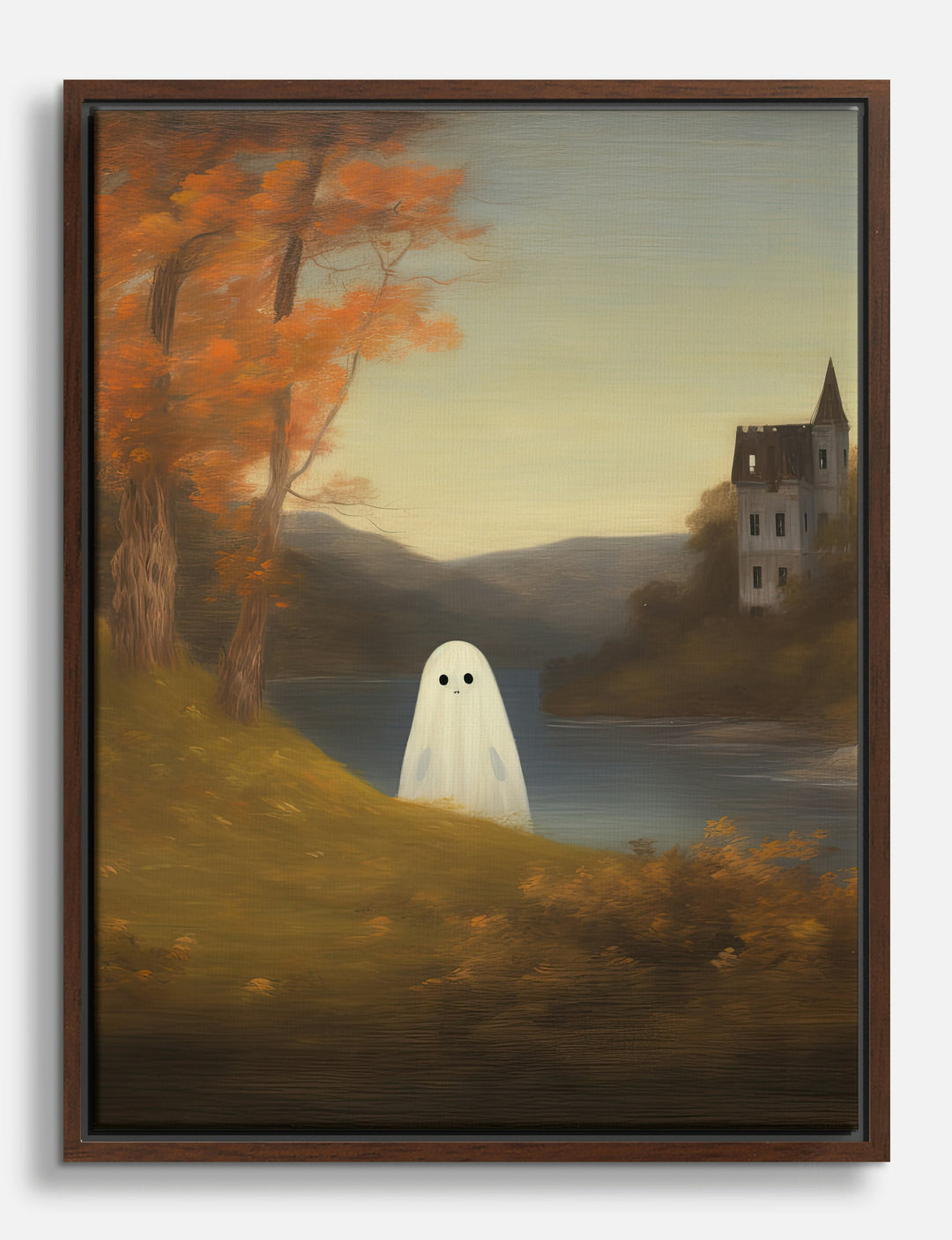 Step into a world where autumn leaves whisper secrets and a playful ghost peeks from behind the trees. This charming piece brings a touch of whimsy to your space, perfect for adding character to your living room or bedroom. The warm, earthy tones effortlessly complement a variety of decor styles, imbuing your space with a cozy, vintage feel. Transform your home into a haven of style and delight without breaking the bank.