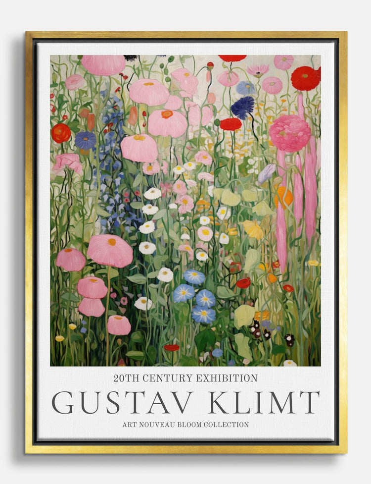 Let your home bloom with the vibrant beauty of Klimts enchanting floral masterpiece. This artwork infuses your space with a cascade of colors, bringing a joyful burst of nature into your living room or bedroom. The harmonious blend of pinks, greens, and blues complements any decor style, making it a perfect piece to express your unique taste and elevate your homes ambiance. Transform your walls into a garden of art and feel the pride of showcasing a timeless piece.