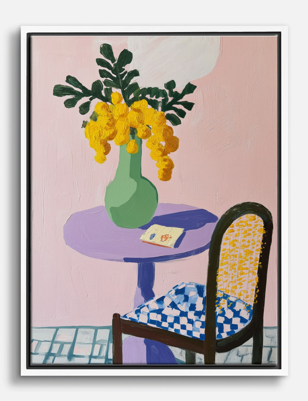 Sunlit yellow blooms and playful patterns instantly energize your space with this vibrant piece. Picture this on your dining room wall or cozy breakfast nook—suddenly, every morning feels a bit more joyful. The bold mix of pastel pinks, lush greens, and cheerful blues makes it a perfect match for modern or eclectic decor. Let your home reflect your creative spirit and welcome in a little everyday delight—no big renovation required.