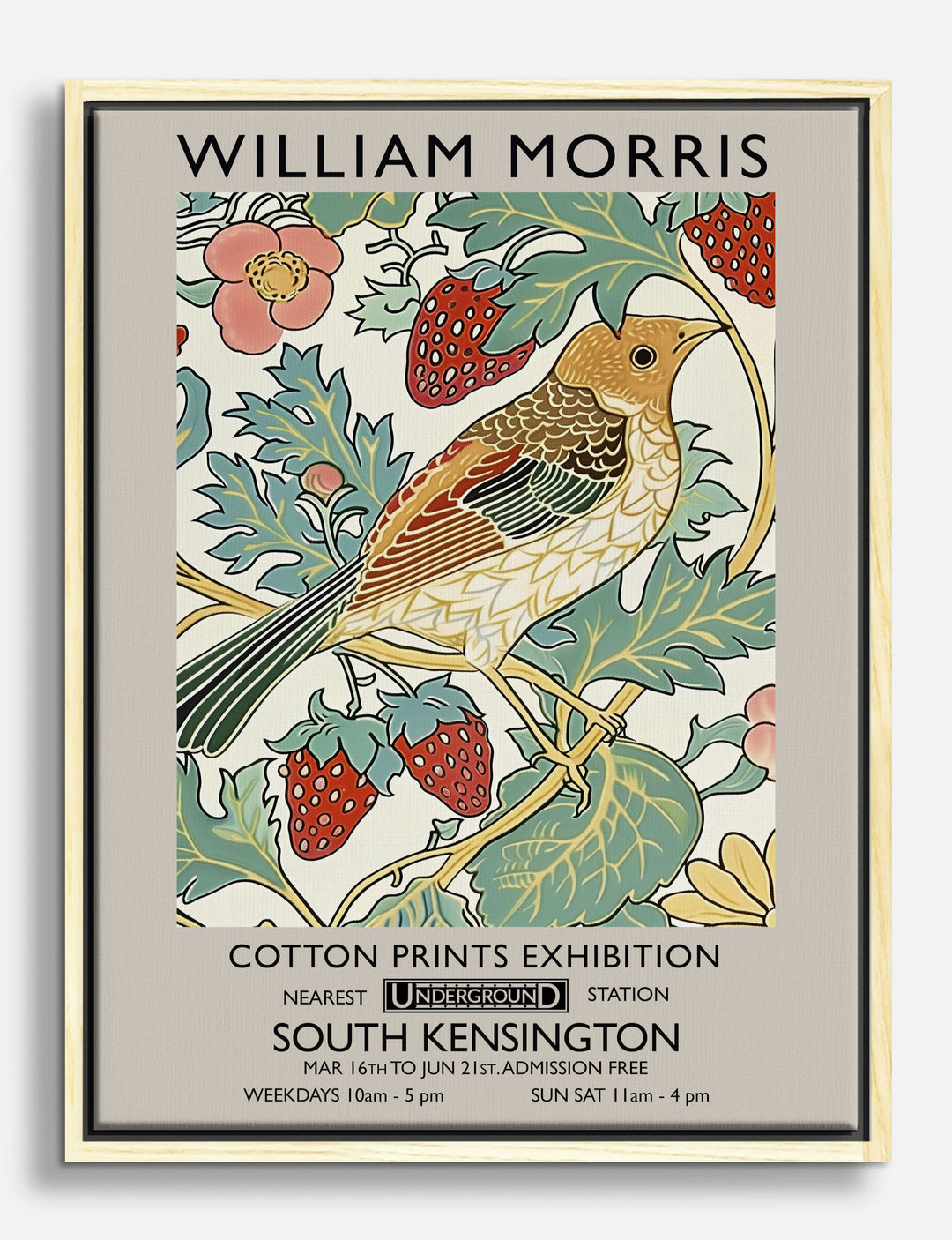Step into a world of timeless beauty with this enchanting William Morris-inspired piece. The intricate design of birds and berries creates a serene yet vibrant atmosphere, perfect for transforming your living space. Imagine this art gracing your living room or bedroom, where its soft colors and elegant patterns blend effortlessly with both modern and vintage decor. Let your home tell a story of style and grace.