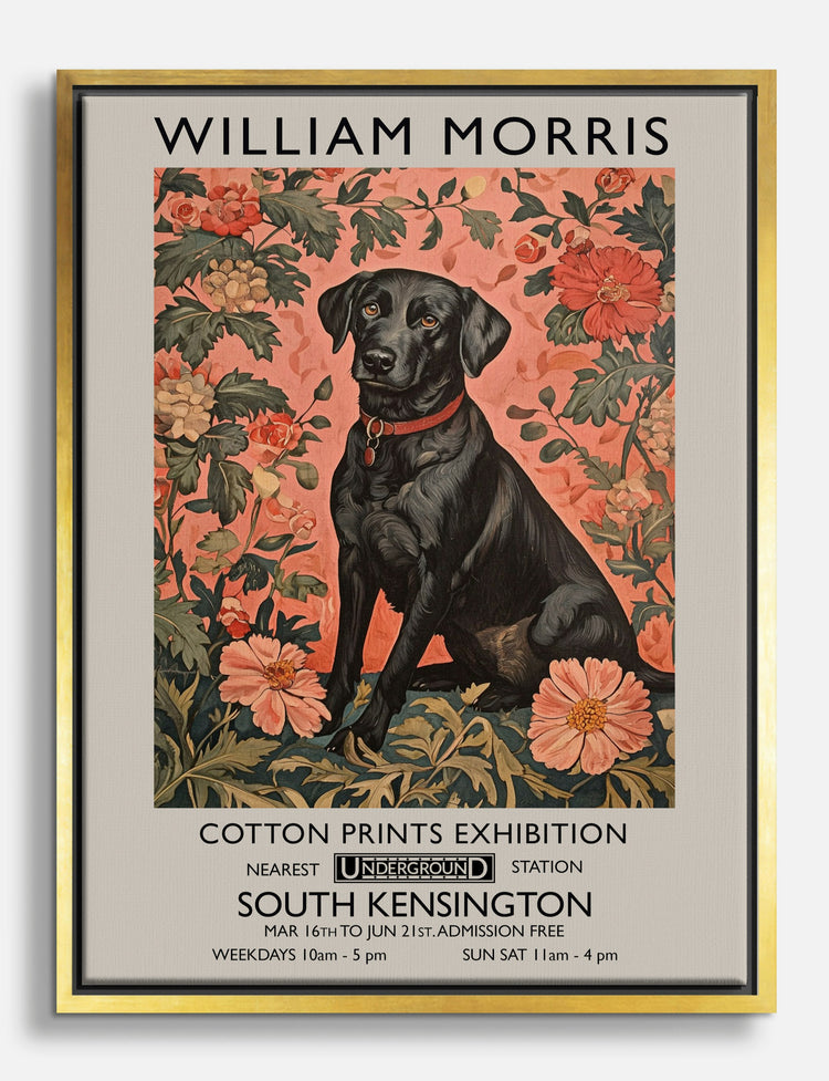Meet your new favorite piece that brings a touch of elegance and warmth to your space. This stunning portrayal of a black Labrador against a backdrop of lush florals is sure to add a splash of charm to your living room or bedroom. With its rich colors and classic style, it effortlessly complements both modern and vintage decor, making it a versatile choice for any home. Let this artwork inspire pride and joy as it transforms your space into a haven of style.