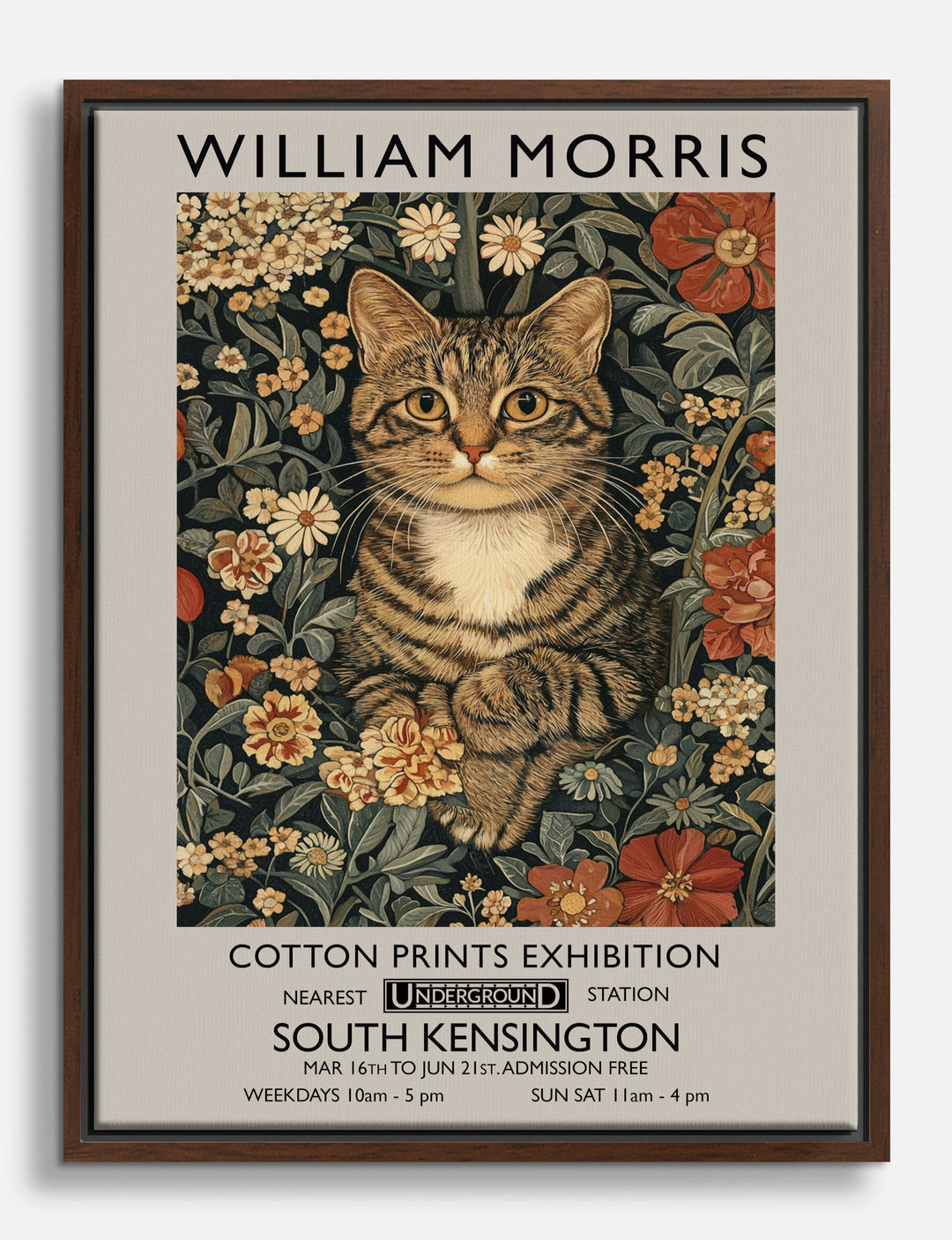 Wrap your space in the classic charm of William Morris with this delightful tabby cat print. Nestled amidst lush florals, this piece brings a touch of whimsy and elegance to any room. Perfect for your living room or bedroom, its earthy tones blend seamlessly with various decor styles, infusing warmth and personality into your home. Let this charming feline be the conversation starter that transforms your space into a cozy haven of style and comfort.