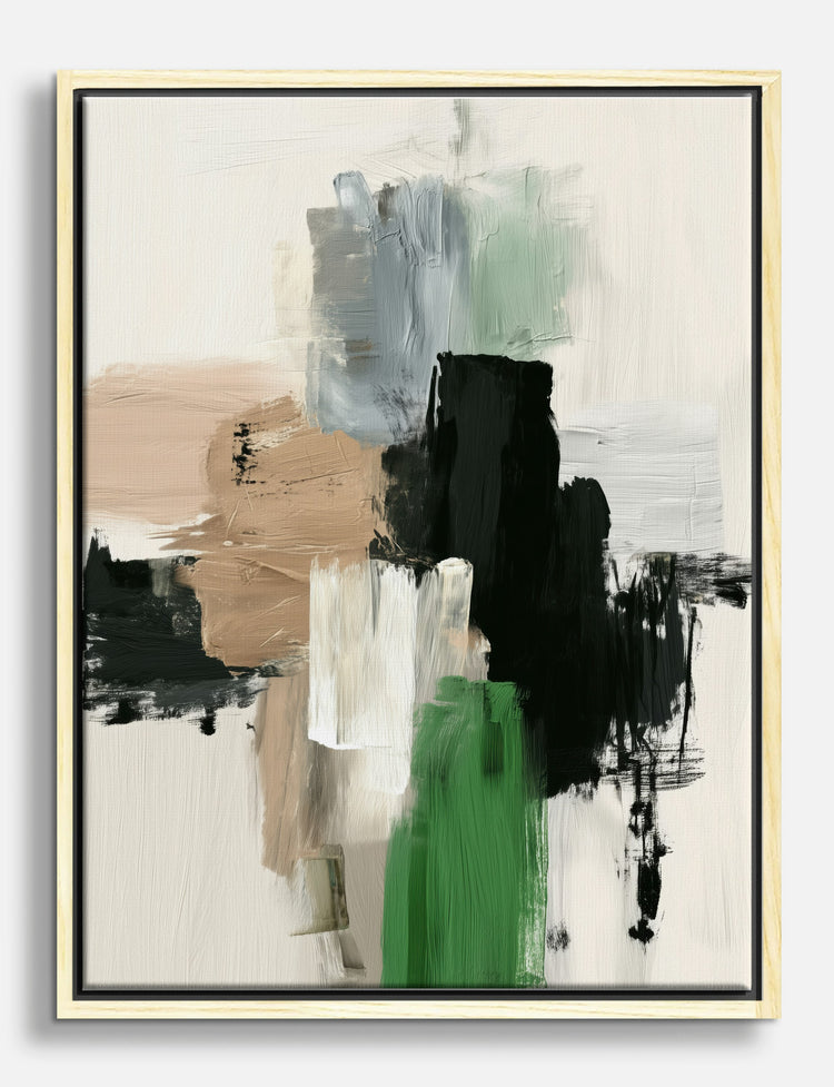 Soft, earthy tones and bold brushstrokes come together in a striking dance—this piece instantly brings a sense of balance and modern flair to your home. Whether youre looking to ground your living room or add a sophisticated edge to your bedroom, its palette of calming beige, lush green, and deep black makes styling a breeze. Youll love how effortlessly it elevates your space, inviting both comfort and confidence into every corner.