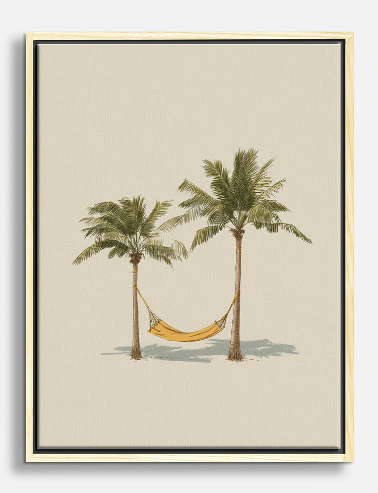 Two palms and a golden hammock—sometimes, serenity really is this simple. Let this tranquil scene bring a laid-back, sun-kissed vibe to your favorite room. It’s a subtle invitation to pause, breathe, and enjoy the easy beauty of your own space.