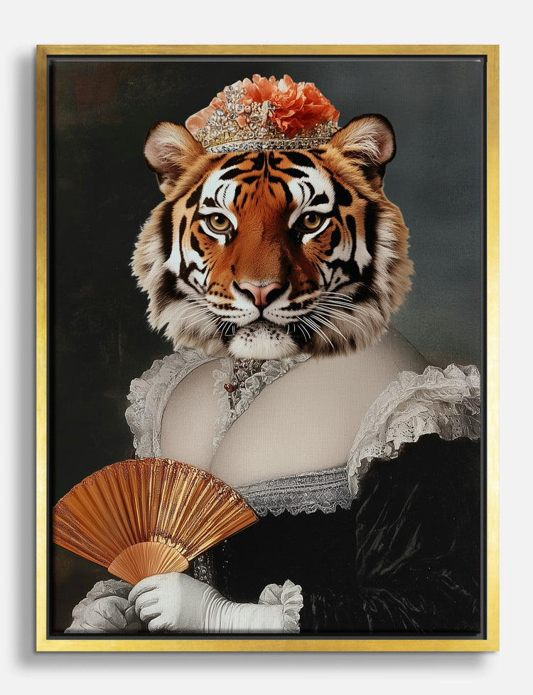 Ever wondered what happens when wild elegance meets aristocratic charm? Meet your new statement piece—where a majestic tiger dons the poise and grace of royalty. This playful yet sophisticated portrait instantly turns any wall into a conversation starter, blending the untamed with the refined.
