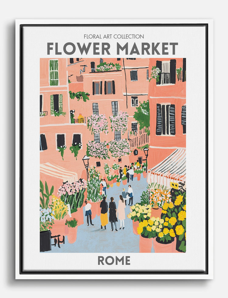 Step into the charm of Rome with this vibrant flower market scene. The lively hues and bustling atmosphere bring a touch of European elegance to your space. Perfect for a living room or kitchen, this piece effortlessly complements warm or neutral decor, inviting a sense of joy and vitality into your home.