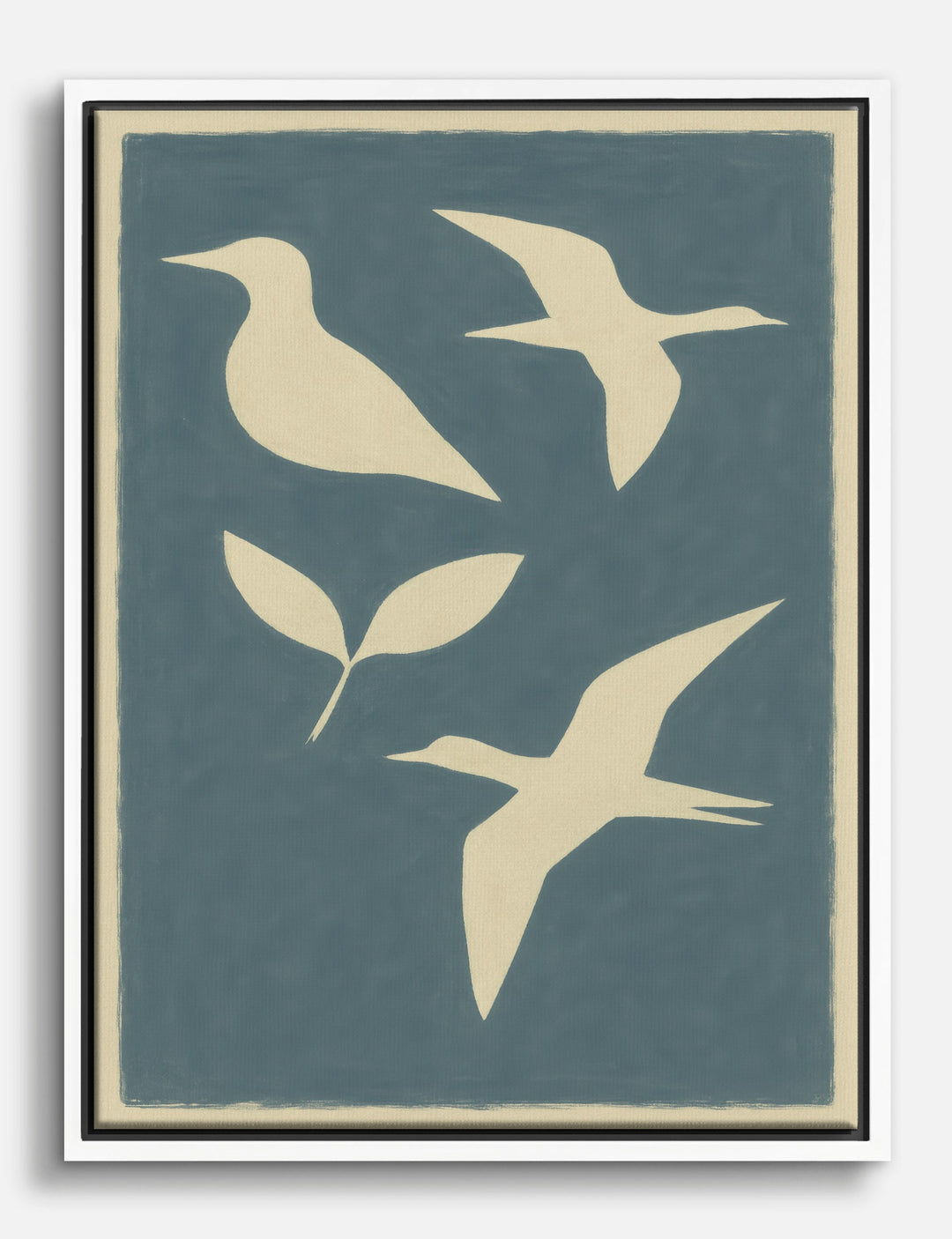 Let the graceful silhouettes of birds in flight bring a touch of serene elegance to your space. This minimalist design, with its calming palette, effortlessly complements your living room or bedroom decor. Feel the tranquility as this piece transforms your home into a haven of style and peace — all without breaking the bank.