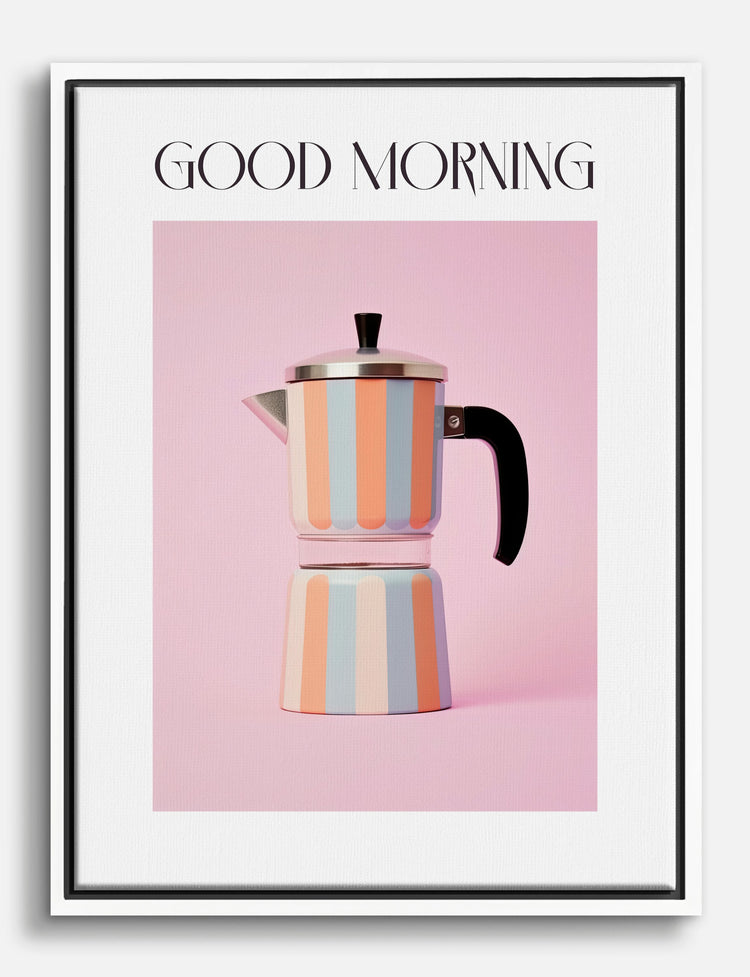 Start your day with a pop of pastel charm — this playful coffee maker print radiates cheerful energy and effortless style. The candy-colored stripes against a soft pink backdrop instantly brighten up your kitchen or breakfast nook, making every morning feel a bit more special.