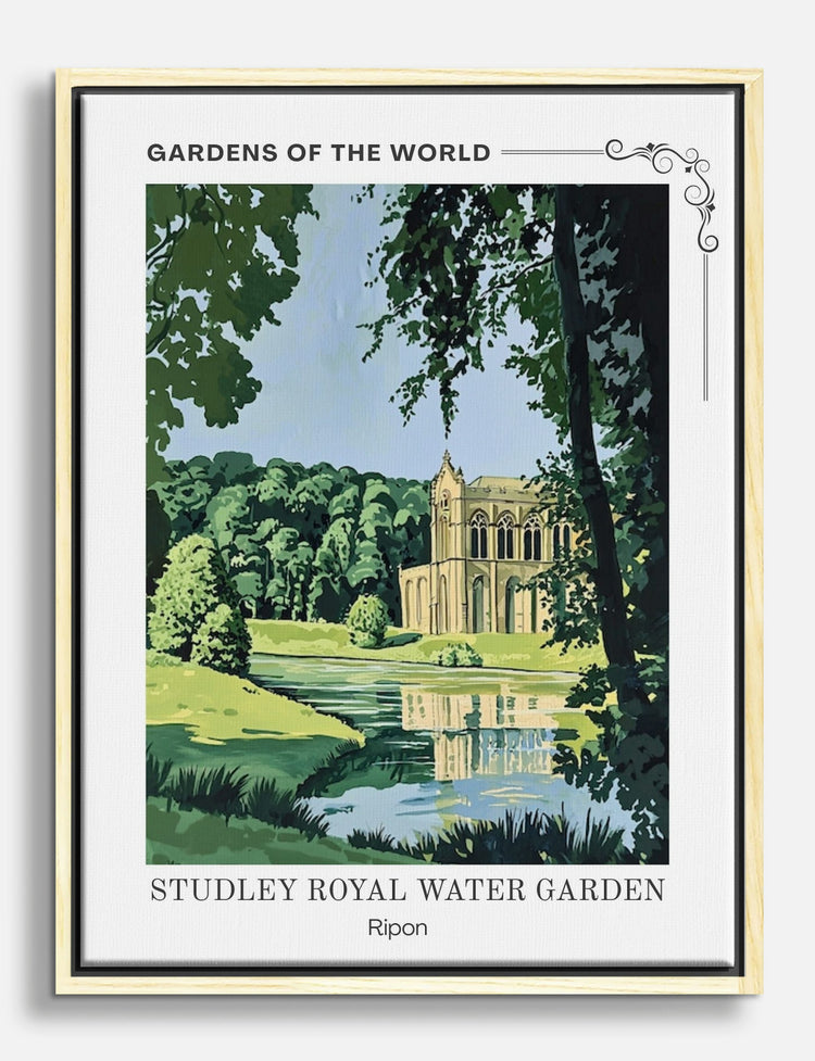 Step into serenity with this beautiful depiction of the Studley Royal Water Garden. The lush greenery and historic architecture create a soothing vibe, making it perfect for your living room or office. Its calming palette of greens and blues effortlessly complements various decor styles, inviting a sense of peace and elegance into your space. Transform your home into a sanctuary of style and tranquility with this unique piece.