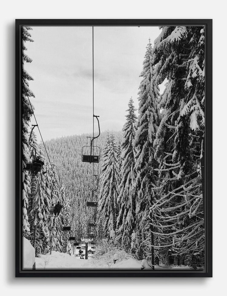 There’s something magical about a silent ski lift gliding above a snowy forest—like pressing pause on the rush of everyday life. This black-and-white scene captures that hush, inviting calm and wonder right into your space.