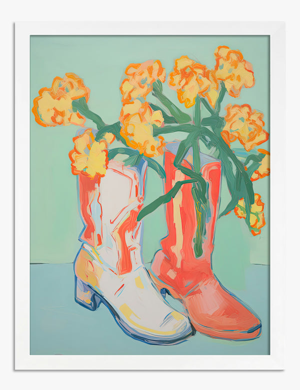 Floral Cowboy Boots Art Print