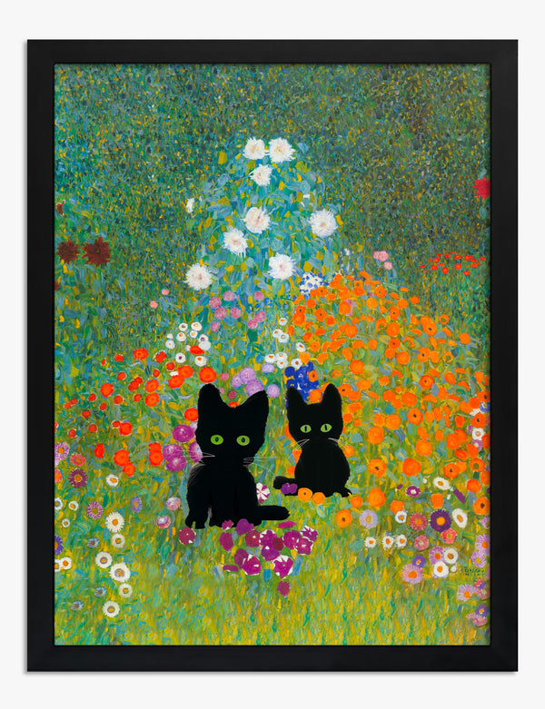 Gustav Klimt Style Orange Cat Meadow Art Print