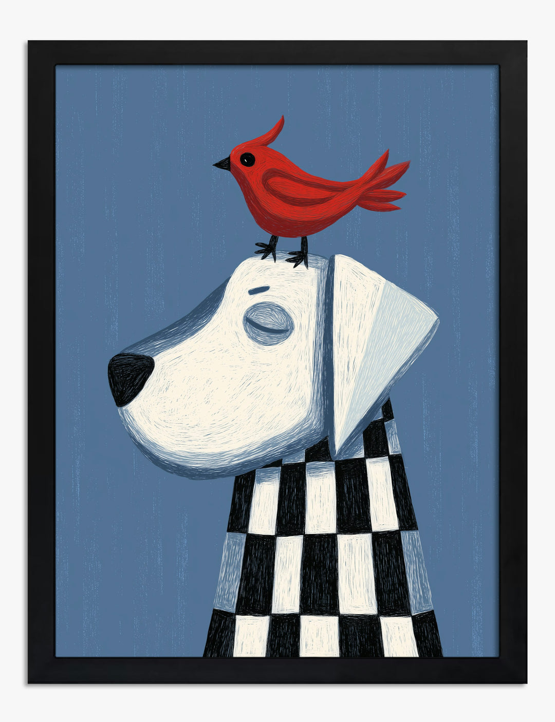 A pop of playful charm, right where you need it most. This vibrant piece brings together a serene, checker-clad pup and a bold red cardinal, offering a quirky duo that’s equal parts sophisticated and fun. Set this on your living room or entryway wall and watch how it instantly energizes the space, inviting smiles and sparking conversation. The cool blues and crisp blacks are effortlessly stylish, while the cardinal’s fiery red brings a unique focal point that’ll make your decor stand out. It’s a reminder that great style can be joyful, accessible, and totally you. With this piece, you’ll transform your home into a space that feels both artful and welcoming—no renovation required.