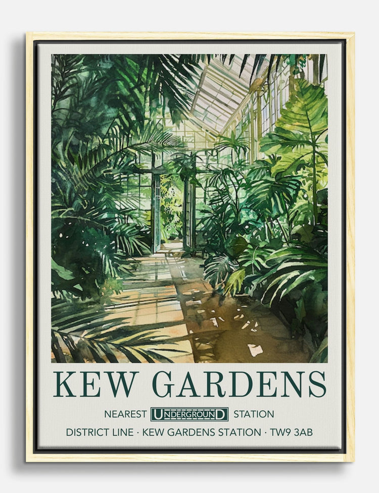 Step into a verdant paradise with this vibrant depiction of Kew Gardens. Let the lush greens and sunlit pathways bring a refreshing touch to your living space, effortlessly blending with both modern and vintage decor. Imagine the pride of showcasing this unique piece, a nod to natures beauty, right in your own home.