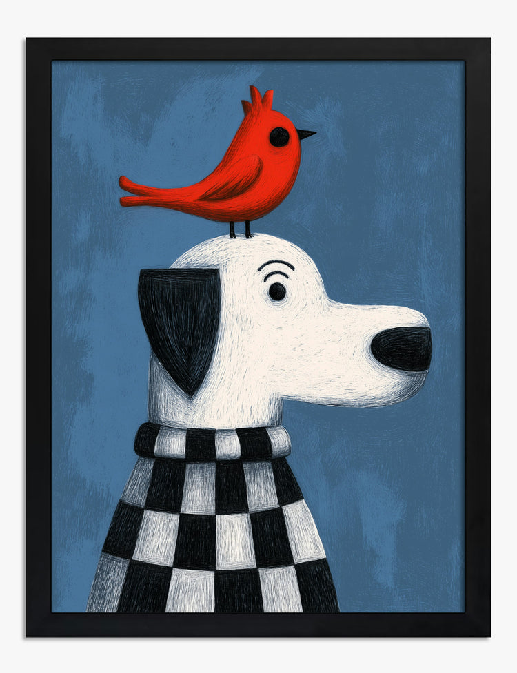 A pop of personality for your favorite wall — this charming duo brings instant smiles. A bold red bird perches confidently atop a stylish, black-and-white dog, both radiating calm and quirky character. The playful palette and crisp checkered pattern make it easy to pair with modern or eclectic decor. Let this piece spark conversation and warmth in your living room, office, or even a kids space. Its vibrant hues and whimsical vibe create an atmosphere that’s both inviting and uniquely you. Show off your sense of fun and style — you’ll love how effortless it feels to transform your space with art that doesn’t take itself too seriously. Sometimes, all it takes is a little pop of joy to make your home truly yours.