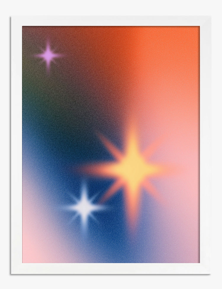 A burst of soft light and shimmering color, this piece feels like catching a glimpse of magic in your everyday. Warm oranges and dreamy blues blend together, while glowing stars seem to float right off the wall—inviting you to pause, breathe, and soak in the wonder. Perfect for your bedroom or living room, it instantly transforms any corner into a space that feels both calm and inspired. The gentle gradient works beautifully with minimalist, modern, or eclectic decor, adding a unique pop without overwhelming your style. You’ll love the way this print brings a little glow and positivity to your home—proof that you don’t need a big budget to create a space that feels truly special.