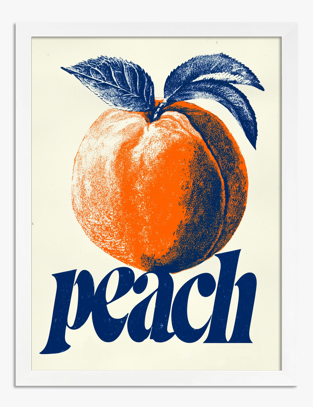 Bold, juicy, and bursting with vintage flair — this piece brings all the playful energy of a summer farmer’s market into your home. The vibrant orange peach pops against deep blue leaves and stylish typography, making every glance feel like a fresh start.