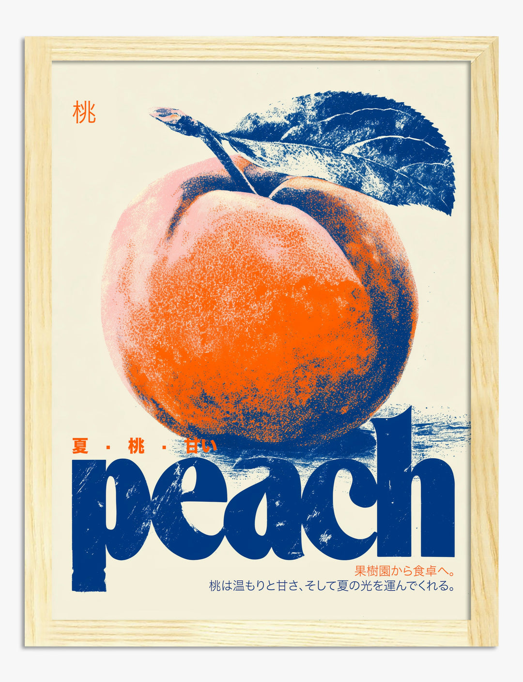 A juicy burst of nostalgia, this retro-inspired peach print instantly energizes your space with its bold color and playful vibe. The vibrant orange and rich blue tones blend vintage charm with modern flair, making any wall feel fresh and inviting.