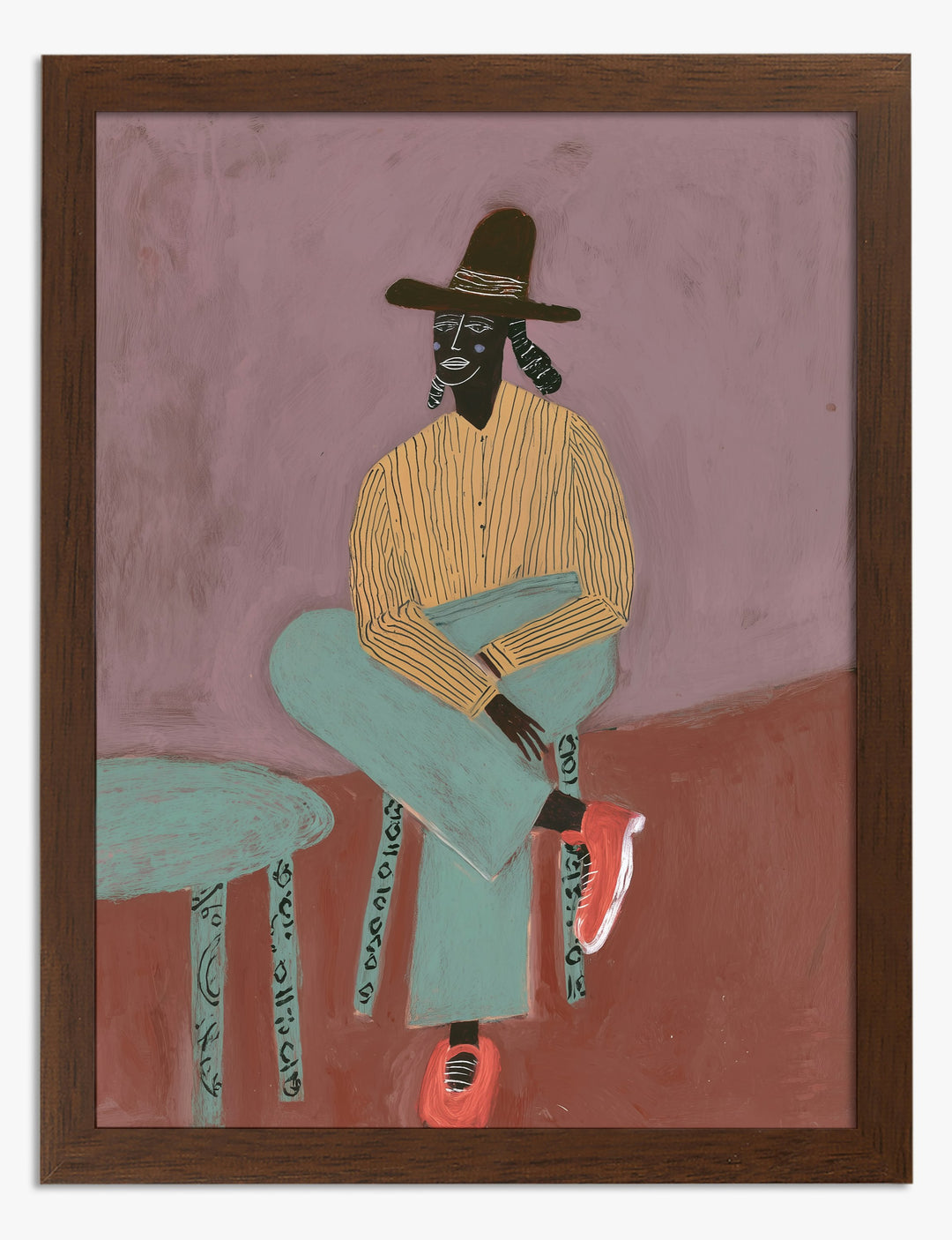 A bold hat, striped top, and a pop of coral sneakers — this portrait radiates self-assured style. It’s more than just a snapshot of a moment; it’s a whole mood, inviting a sense of relaxed confidence into your space. Picture this piece anchoring your living room or bedroom, where its earthy mauve and teal tones play beautifully with both minimalist and eclectic decor. The gentle lines and soft color-blocking make it easy to mix, while the unique character keeps your walls anything but ordinary. You don’t have to be an art expert to fall for this vibe. Let it inspire you to bring out your own sense of individuality and pride — because with Fab, great style is always within reach.