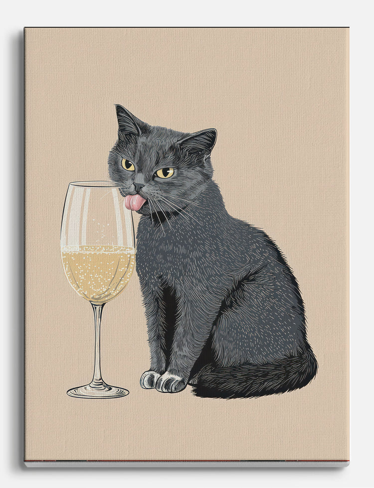 A playful grey cat and a sparkling glass of champagne—this piece brings instant personality to your space. Perfect for anyone who loves a touch of whimsy alongside sophisticated style. The neutral background and soft, charcoal hues make it easy to pair with both bold and minimalist decor.