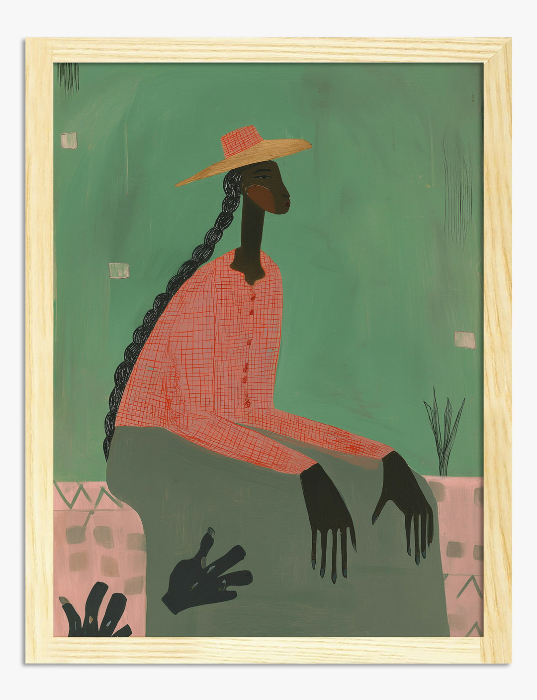 Bold lines and gentle hues blend to create a portrait that feels both modern and timeless. This piece radiates a sense of calm confidence — the kind that makes you want to slow down and savor the quiet moments in your day. Picture it above your favorite reading nook or in a sunlit corner of your living room, where its earthy greens and soft reds will instantly uplift your space. The relaxed figure in her straw hat brings a touch of easygoing charm, perfect for anyone who loves a blend of style and tranquility. You’ll love how the muted palette pairs effortlessly with everything from minimalist decor to eclectic accents. It’s more than just a print — it’s a reminder to embrace your own unique pace, right at home.