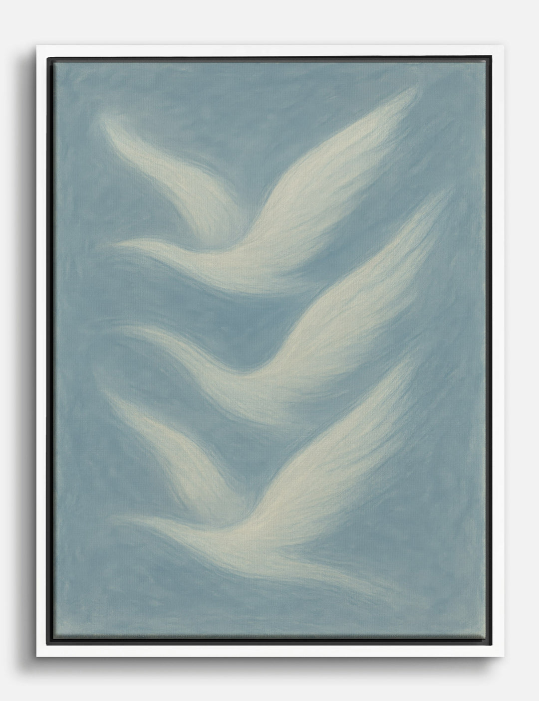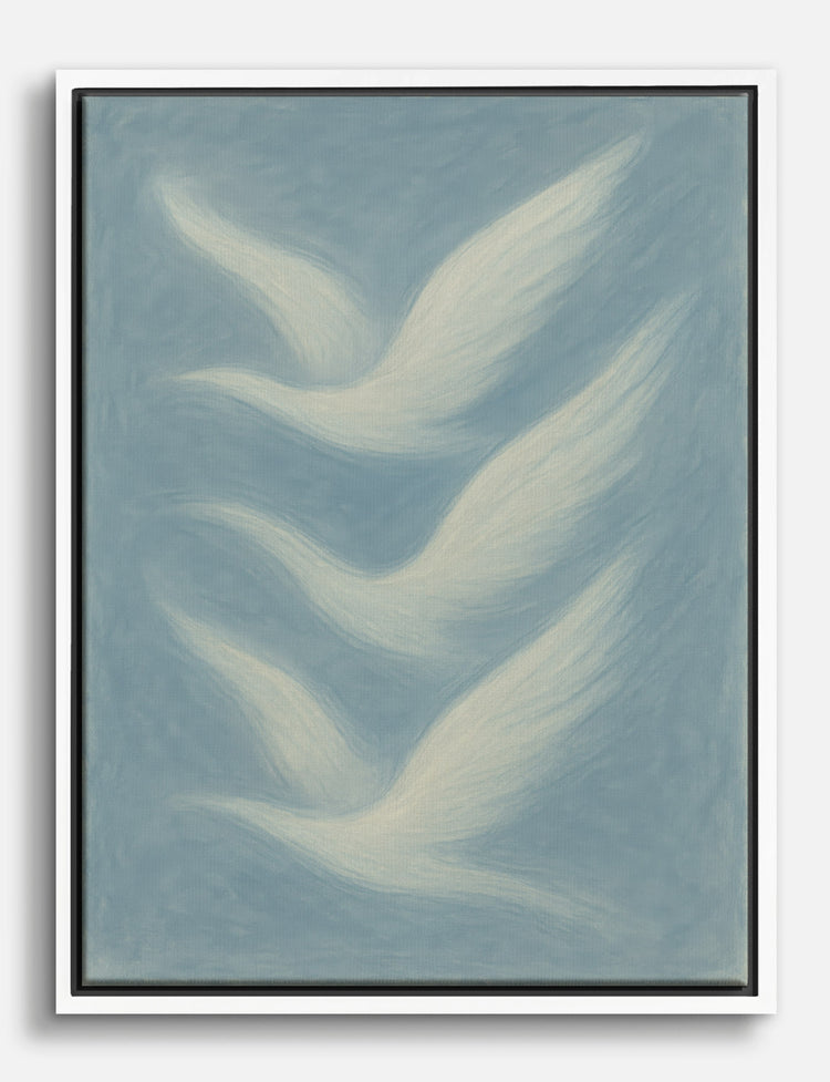 Feel a sense of calm and serenity with this dreamy depiction of doves in motion. Their soft, flowing forms bring a soothing presence to any room, making it a perfect addition to your bedroom or living room. The gentle blue and white palette effortlessly complements various decor styles, adding a touch of elegance and peace to your space. Transform your home into a haven of tranquility with this unique piece, and let your walls speak of grace and freedom.