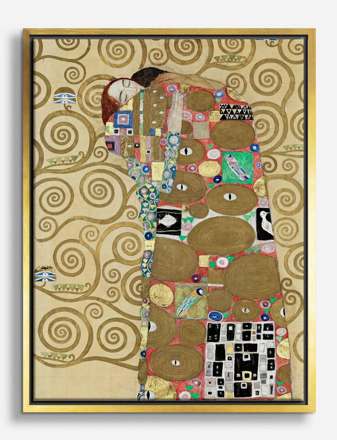 Swirling golds and rich patterns create a moment of pure connection—this is Gustav Klimt at his most captivating. Let this iconic embrace bring a sense of warmth, artistry, and sophistication to your living room or bedroom. The luxe palette of gold, beige, and subtle pops of color makes it a perfect match for both modern and eclectic spaces. Hang it up and feel the pride of owning a piece that’s truly transformative—making your home uniquely, beautifully yours.