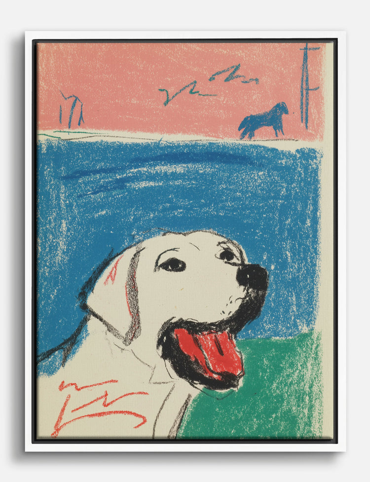 Big, happy energy radiates from this playful pup. With its bold colors and expressive lines, this piece instantly brings a sense of warmth and lighthearted fun to your space. The white dog’s open-mouthed grin feels like a heartfelt welcome home—every single day.