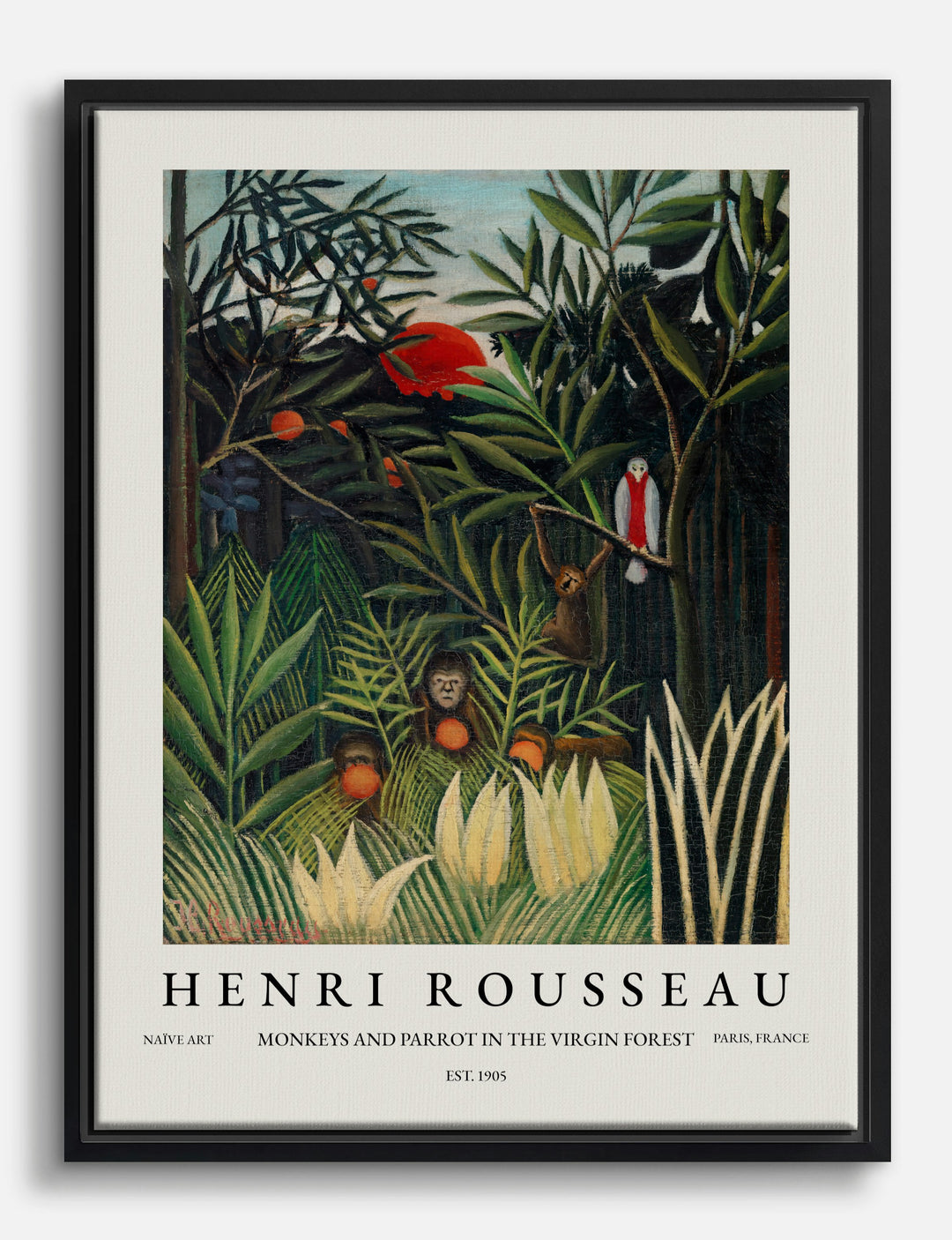 Step into the lush embrace of Rousseau’s vibrant jungle, where monkeys and parrots play amidst a tapestry of rich greens and exotic flora. This artwork effortlessly brings a touch of the wild into your home, perfect for adding depth and intrigue to your living room or study. Let the bold colors and whimsical scene inspire a sense of adventure and creativity in your space, while effortlessly complementing both modern and eclectic decor styles. Transform your home into a sanctuary of artful expression with this unique piece.