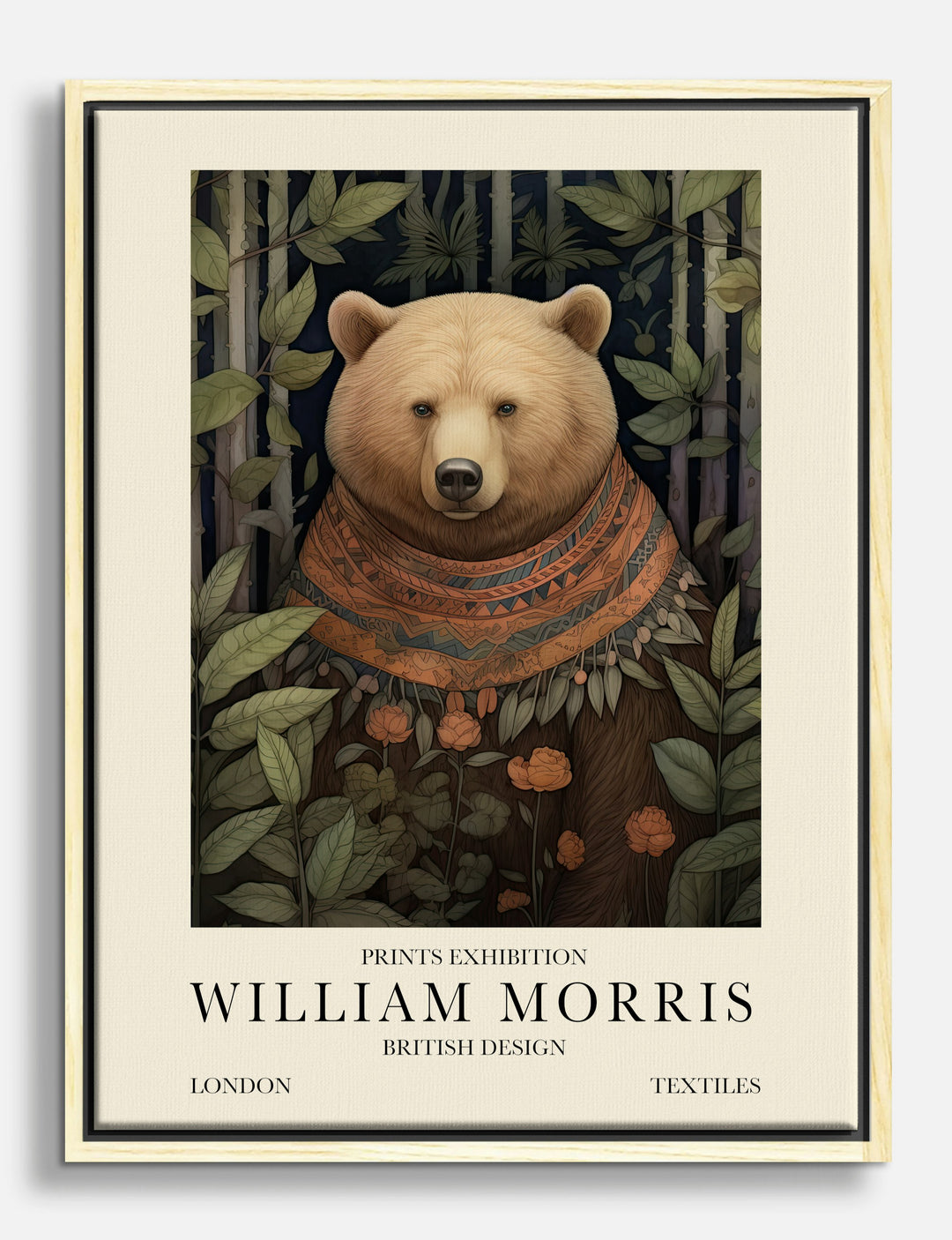 A gentle bear, draped in a richly patterned scarf, greets you with calm confidence from a lush, leafy backdrop. This piece brings a touch of British charm and whimsy to your walls—perfect for anyone who loves a blend of nature and artistry. The earthy palette of soft beiges and deep greens makes it an easy fit for your living room or bedroom, adding warmth and personality. Let your space tell a story of style, comfort, and creativity—without breaking the bank.