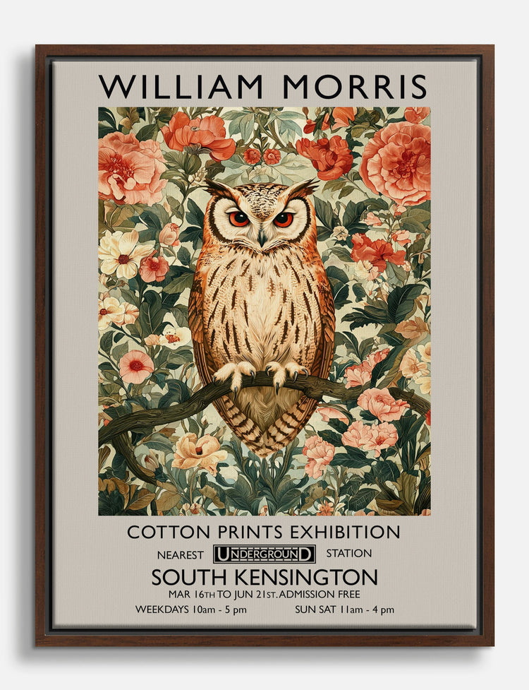 Step into a world of enchantment with this captivating owl piece by William Morris. Its intricate floral backdrop and wise owl presence create a serene and stylish atmosphere, perfect for your living room or study. The warm, earthy tones blend effortlessly with various decor styles, adding a touch of vintage elegance to your space. Embrace the joy of transformation and let your home reflect your unique personality with this timeless artwork.