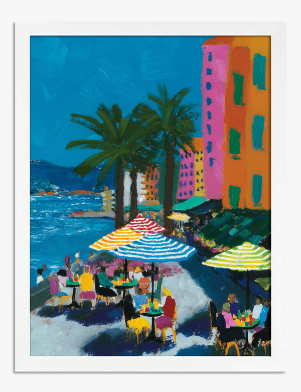 Vibrant Riviera Café Scene Art Print