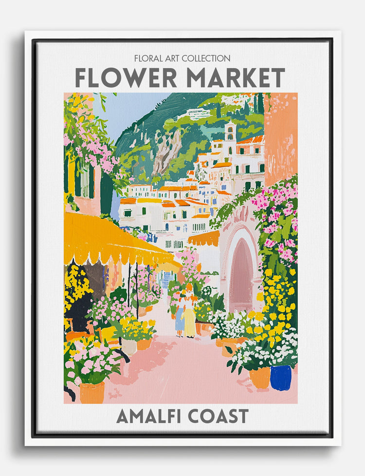 Bask in the vibrant charm of the Amalfi Coast with this delightful artwork. Picture a sunlit flower market, where colors pop and every glance feels like a mini-vacation. Perfect for your living room or entryway, this piece effortlessly brings a touch of Mediterranean warmth and style into your home. Let its cheerful hues and idyllic scene inspire joy and pride in your space.