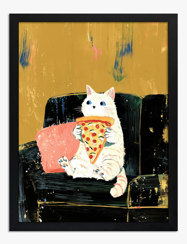 Cozy Cat & Pizza Art Print