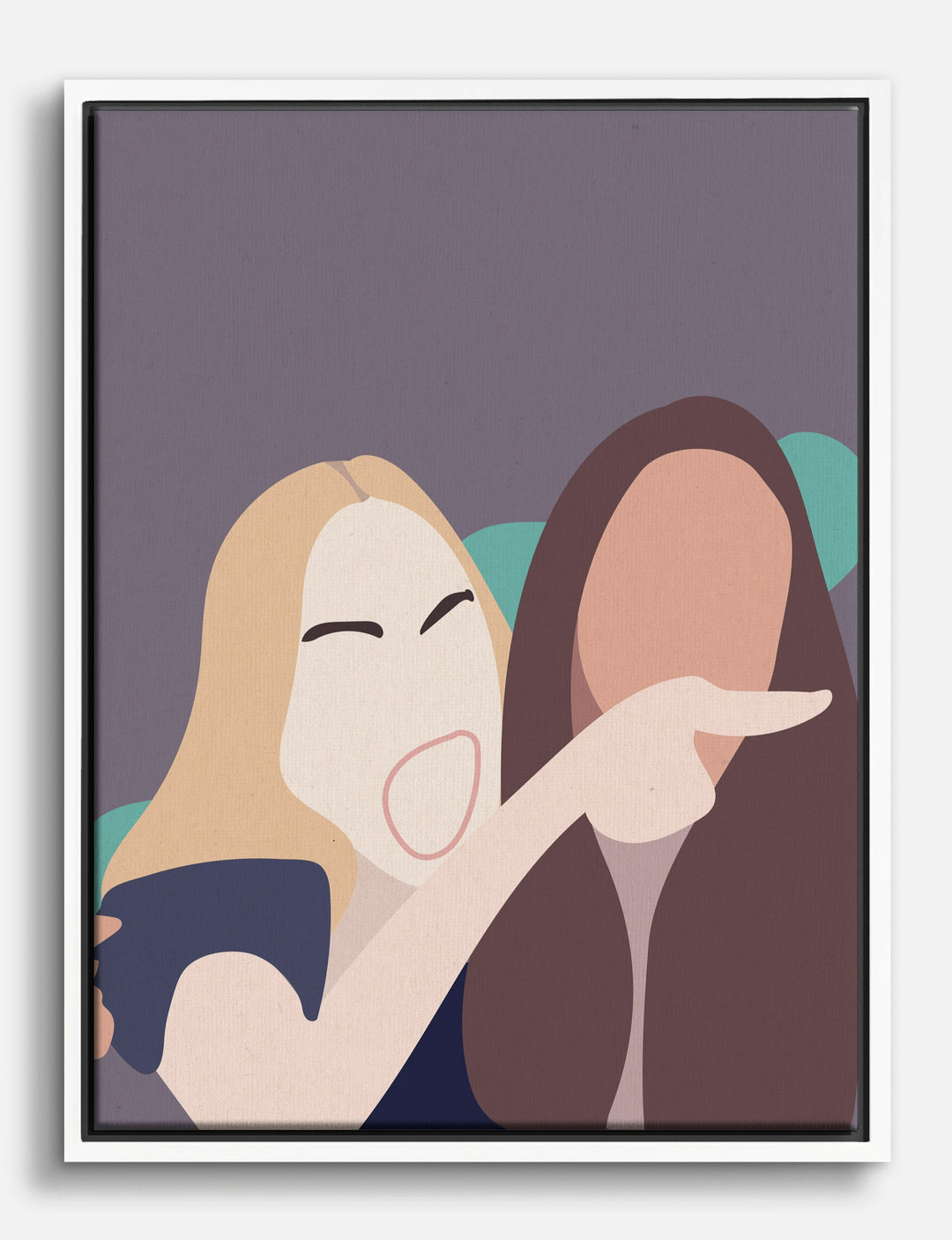 Bold, playful shapes capture the pure joy of friendship in this vibrant piece. Two figures share a moment of laughter, infusing your space with lighthearted energy and connection. This is the kind of art that instantly brightens your mood—and your room.