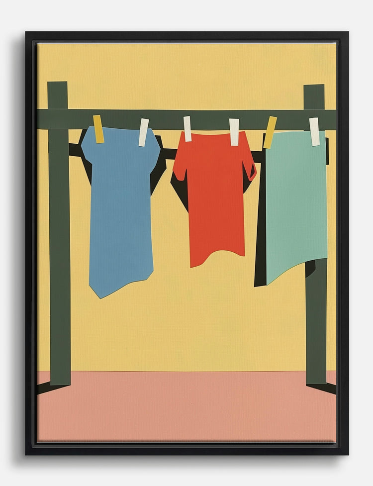 Infuse your space with a playful charm through this vibrant piece. A celebration of color and simplicity, it brings a touch of whimsy to any room. Perfect for a cozy corner in your living room or a creative splash in your kitchen, its bold hues effortlessly complement a variety of decor styles. Let your walls speak joy and creativity with this unique artwork.