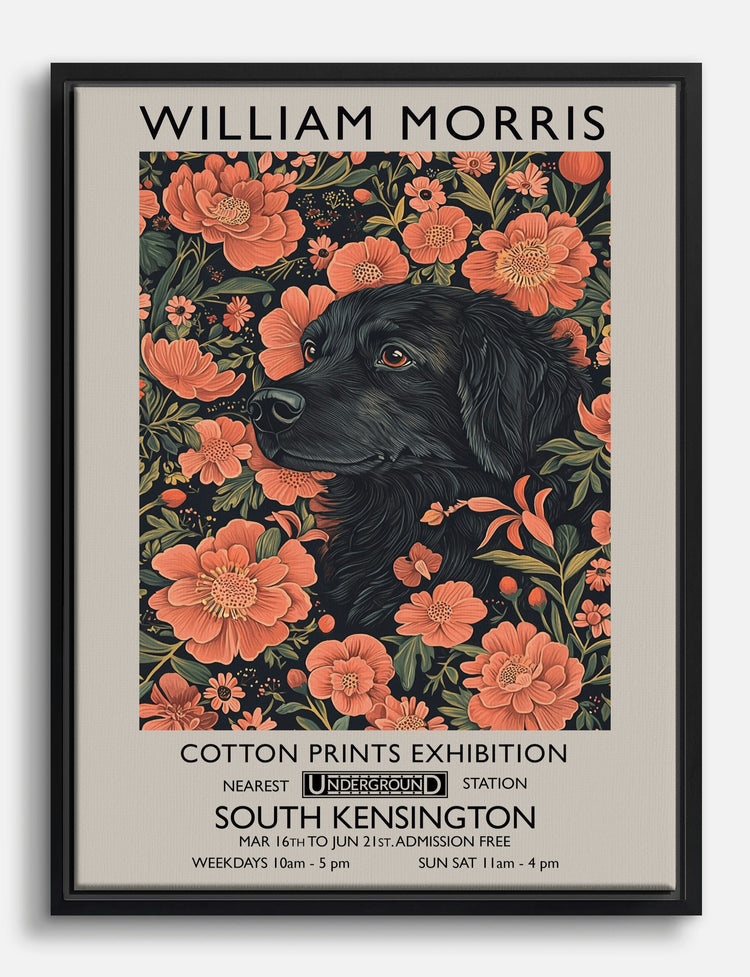 Unleash a touch of vintage elegance in your space with this captivating piece. The rich floral tapestry and the serene gaze of the black dog create a harmonious blend that mesmerizes. Perfect for your living room or bedroom, this artwork complements both classic and modern decor with its warm, inviting palette. Let it bring a sense of pride and style to your home, effortlessly transforming any corner into a cozy haven.