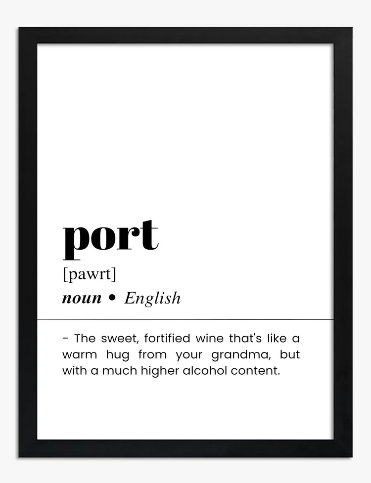 Ever thought your bar cart could use a little wit and warmth? This playful definition print adds a splash of personality to any room, blending sharp black-and-white style with a clever nod to everyones favorite sweet, fortified wine.