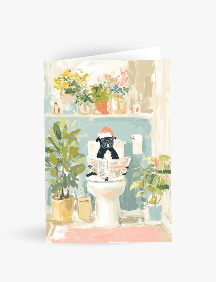 Pug on Toilet Holiday Greeting - Funny Dog Christmas Card