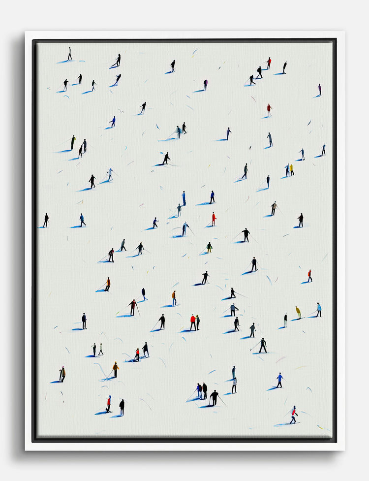 Tiny pops of color and movement bring this snowy scene to life, capturing the playful spirit of a day on the slopes. Youll feel an instant lift every time you walk by, as skiers dot the crisp white canvas with energy and charm.