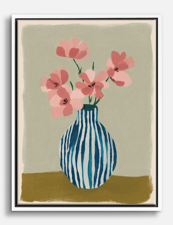 Striped Vase & Pink Blooms Canvas Print