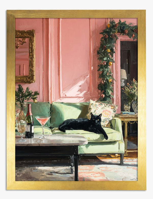 Festive Cat & Velvet Lounge Art Print