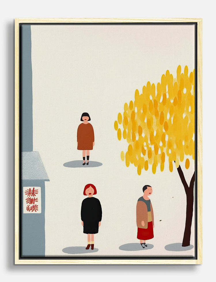 Golden leaves pop against a modern city backdrop, bringing a splash of warmth and whimsy to your walls. This piece captures everyday moments in Tokyo with a playful, minimalist touch—perfect for those who appreciate style in the simple things.