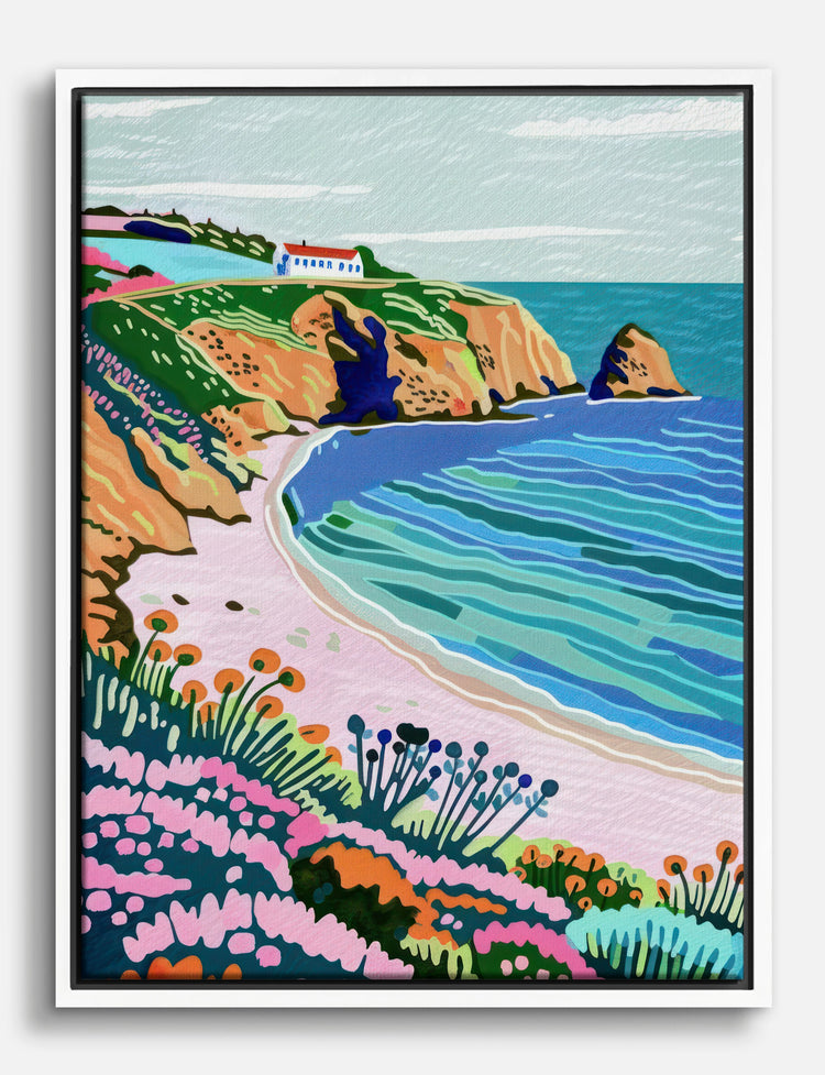 Vivid blues and sunlit cliffs bring a fresh, coastal breeze right into your space. You’ll feel the calm of seaside mornings every time you walk by, as wildflowers and rolling waves brighten your day.