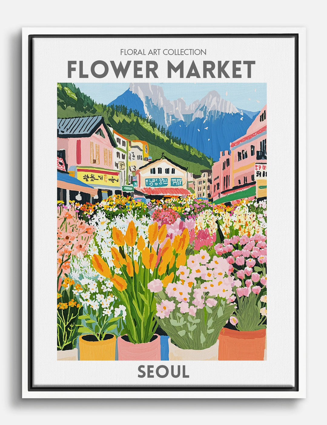 Step into a vibrant world where colors bloom and joy flourishes. This captivating piece brings the lively energy of a bustling flower market right into your space. Perfect for your living room or bedroom, its vivid palette effortlessly complements modern and eclectic decor styles. Let this artwork transform your home into a cheerful sanctuary, where every glance is a reminder of beauty and self-expression.