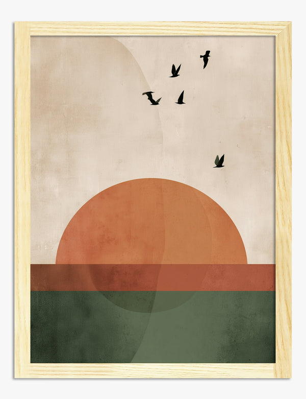 Lámina amanecer geométrico moderno con sol naranja