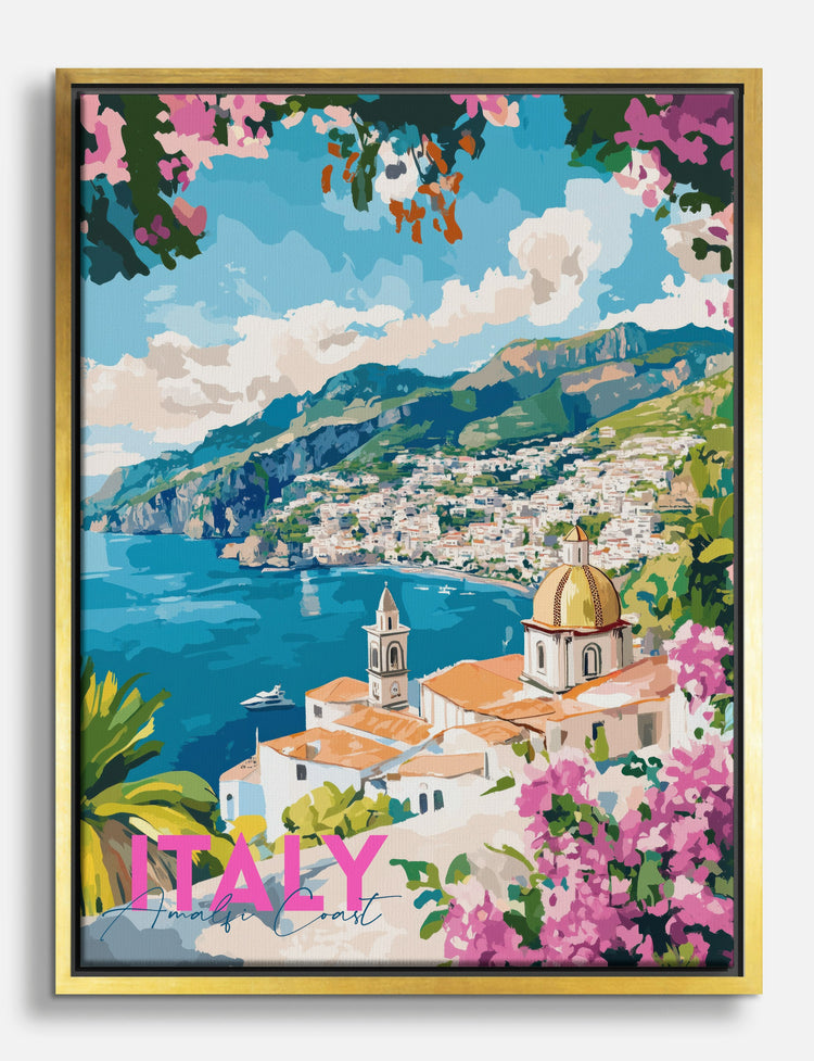 Let the vibrant allure of the Amalfi Coast transform your space into a sunlit haven of beauty and relaxation. This stunning depiction captures the essence of Italys coastal charm, perfect for bringing a splash of color and warmth to your living room or bedroom. With its rich blues and lush greens, this piece effortlessly complements a variety of decor styles, inviting joy and pride into your home every day.